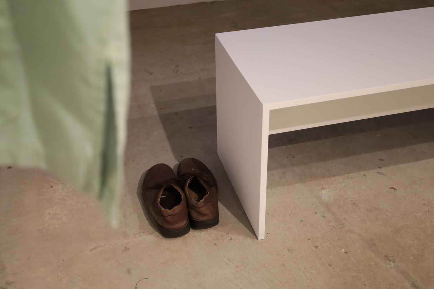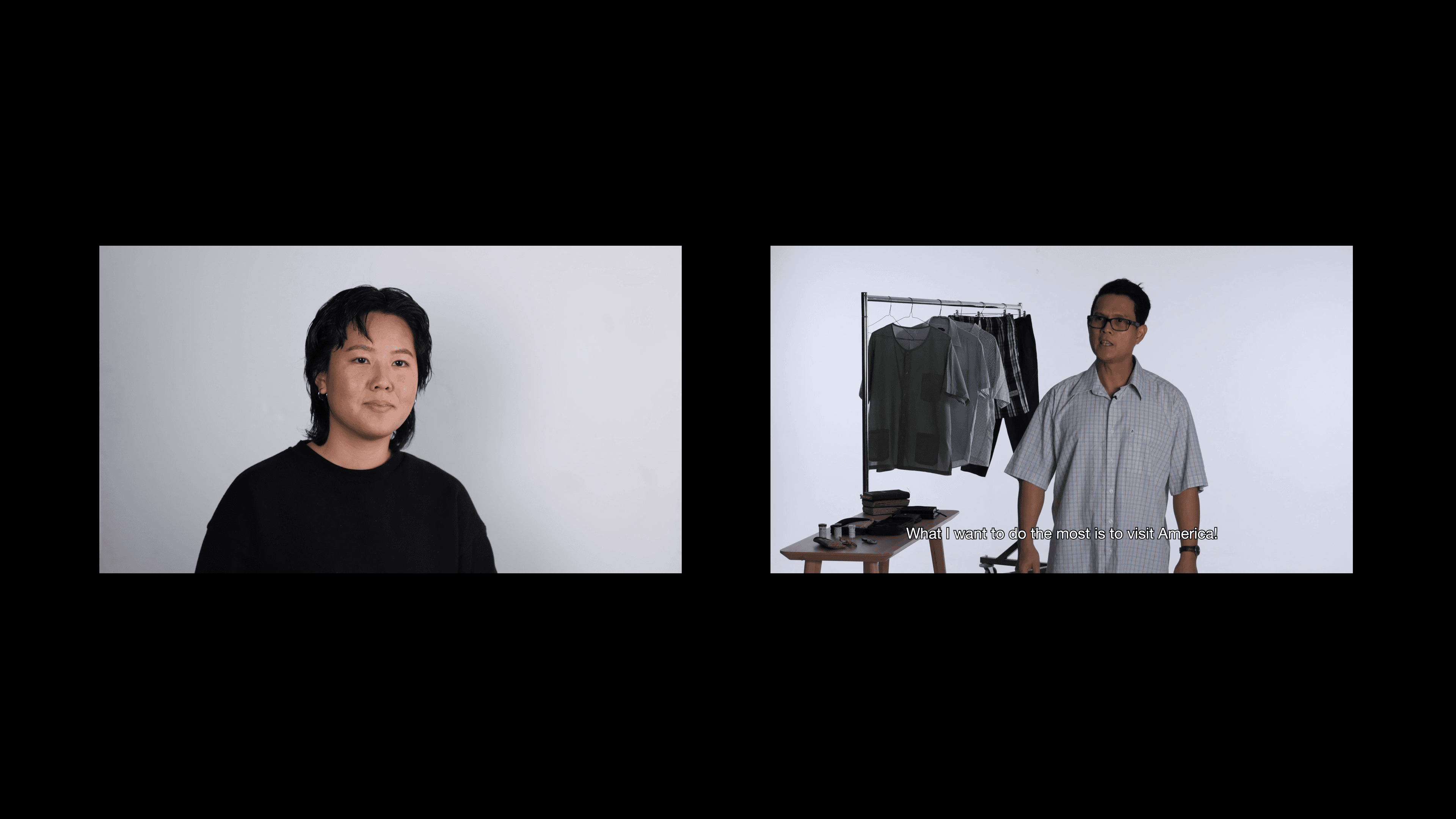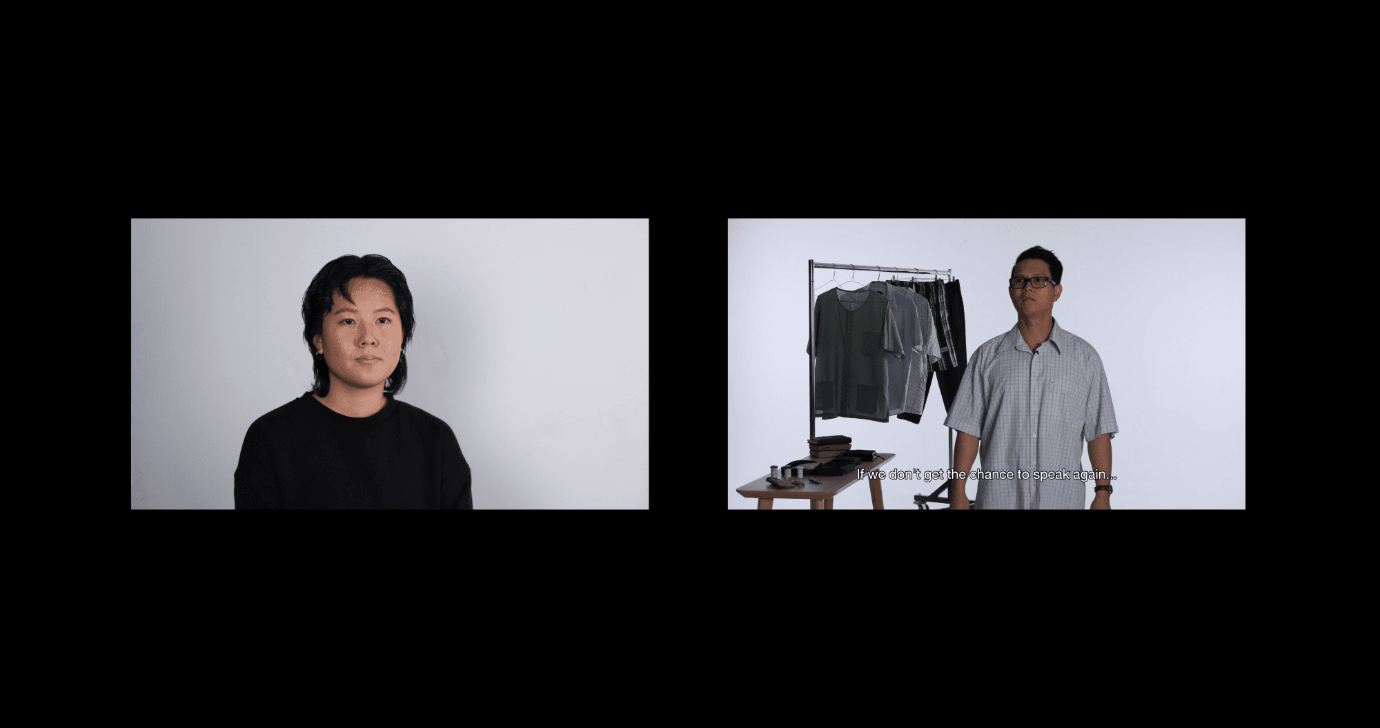 The video portion of this installation displays the dialogue between Sunny and five non-professional actors, who are Thai immigrants living in New York City. They were asked to embody the role of their dead father. They are asked a series of questions to improvise responses to. The videos are accompanied by an array of items that belonged to Wuthichai Leerasanthanah, and were made available to the actors as props to use and wear during the recording of the performances.